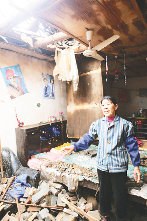 一万七千人受灾 江西省东乡县圩上桥镇梧城源村李细兰家的卧室被损毁。 4月10日8时至11日8时,江西部分地区遭受风雹灾害,造成1.7万人受灾,直接经济损失3500余万元。 新华社发