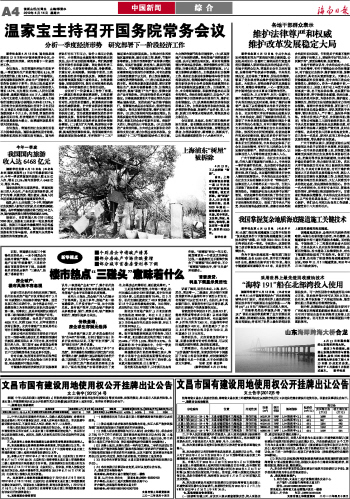 海南日报 中国新闻 综 合 004 2012-04-141 2012年04月14日 星期六