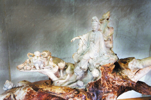 | 首届中国(海南)国际沉香旅游博览会上展出的沉香虫漏工艺品。 |