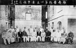 | 1930年,海南医院建立,王国宪(圆圈者)与第一届董事合影。 |