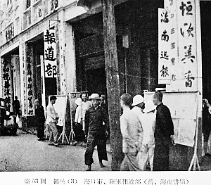 书局,作为现代出版社的前身,同时也从一定程度上反映出该地区文化发展的水准。海口市博爱路上众书局中,“海南书局”、“会文书局”、“广智楼书局”、“华文书局”是当年具有一定规模的书局,而从出版书目、印刷机数、工人总数等方面来看,以“海南书局”最为突出。海南书局不愧为海南有识之士的理想共同体。除了出版海南文史书籍,宣传抗日的作品也不让内地爱国书店,如《抗日十杯茶》、《抗战歌谣》、《飞将军空中大战》、《郝梦麟抗敌殉国》、《抗日游击战争》、《中国抗战地理》、《战时读本》等等,体现了以王国宪为首的海南学者、精英们为国分忧的拳拳之心。