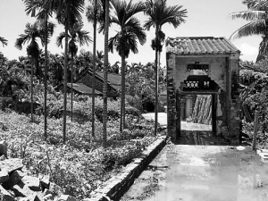 穿过三亚崖城街道上的车水马龙,与一个个瓜菜北调站擦肩而过。在崖城左侧,一个拱门岿然而立,关山月题写的“水南村”三个大字赫然在目。崖州八景之一的胜地,就在眼前。