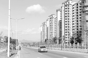 4月15日,汽车行驶在功能性通车的琼海嘉积新海路上。全长3456米、宽39米,总投资1.37亿元的新海路即将竣工,道路两旁将栽种莲雾、菠萝蜜、芒果等热带水果树,成为果园景观路。 特约记者 蒙钟德 摄