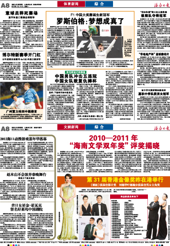 海南日报 体育新闻/文娱新闻 008 2012-04-161 2012年04月16日 星期一