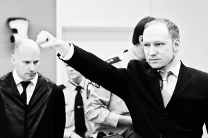 4月16日,在挪威奥斯陆法院,“7·22”事件制造者布雷维克摆出极右主义手势。 新华社/挪威通讯社