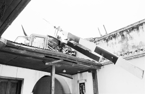 这是4月15日,在危地马拉的安提瓜拍摄的发生坠机事故的直升机残骸。 据当地媒体称,这架直升机当天坠落居民屋顶,造成4人受伤,坠机原因尚未明确。 新华社/路透
