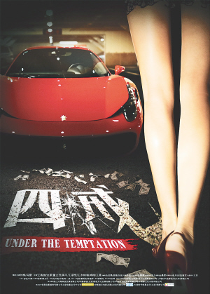 据介绍,《四戒》这款概念海报中,底部的“四戒”中文字体铿锵有力,具有警世效果,而飘逸的英文字体加上一抹红色背景,悬念重生,让人遐想无限。这款概念海报,设计紧贴影片主题,香车、美女、金钱分别影射了现代社会中人们的贪婪和欲望。海报中的红色高跟鞋、红色跑车、“四戒”英文字体红色背景,都具有强烈的视觉震撼效果,这些红色元素,也正暗示着电影中主人公内心的欲望之火,而他们最后的结局,也许只留下一抹惨淡的血色。