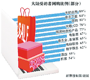 国内网民的网购消费行为范围也越来越广泛。善于网购的消费者正将越来越多的线下购物行为转移到线上。以电影票类别为例,2009年仅有34%的受访对象表示网购过电影票。该项数据在2010年的调查中升至42%,并在2011年达到67%。