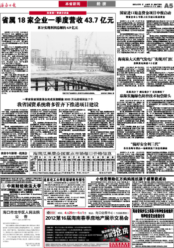 海南日报 本省新闻 005 2012-04-171 2012年04月17日 星期二