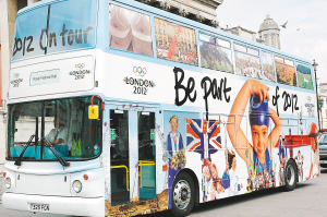 | 这是庆祝伦敦申奥成功的巡游大巴在伦敦街头行进。