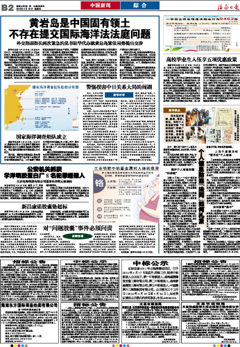 黄岩岛是中国固有领土不存在提交国际海洋法法庭问题