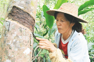早在1996年,王金萍投资1.2万元承包了村小组200多亩山坡地,开始了艰难的橡胶种植之路。