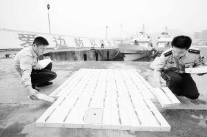 4月21日,深圳边防支队背仔角站官兵在巡逻至深圳市华侨墓园对出海域时截获一条小快艇,查获涉嫌走私的电子热销产品苹果iPad3平板电脑80台。 新华社发