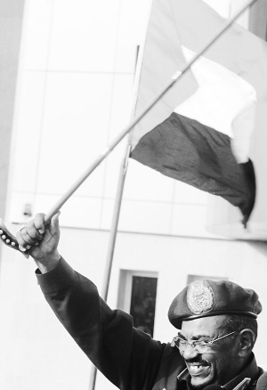 | 4月20日,苏丹总统巴希尔向支持者致意。