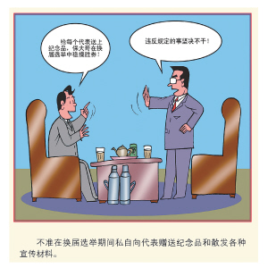 不准在换届选举期间私自向代表赠送纪念品和散发各种宣传材料。