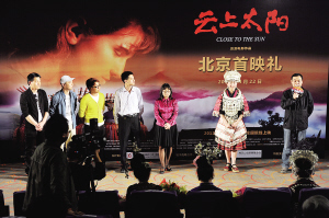 | 《云上太阳》剧组人员在北京举行首映礼。新华社发 |