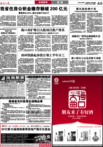 海南日报 本省新闻 005 2012-04-241 2012年04月24日 星期二
