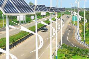 | G98高速公路海棠湾入口处,数千盏太阳能、风能路灯组成了一道漂亮风景,突出了“国家海岸”先进的环保理念。 苏建强 摄 |