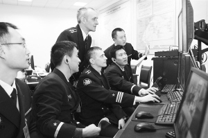 | 中俄双方导调人员密切注视海上演习情况。