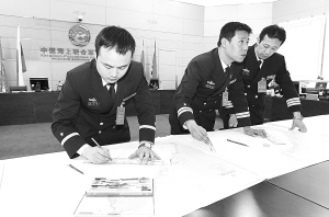 | 中方指挥人员在进行图上作业。 |