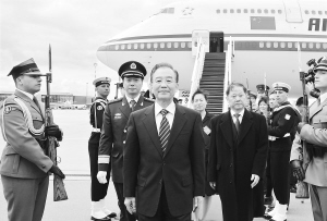 4月25日,国务院总理温家宝乘专机抵达华沙,开始对波兰进行正式访问。 新华社记者 叶平凡 摄
