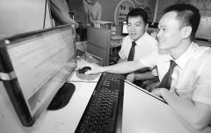 | 4月25日中午,在海口某企业办公室内,青年员工在观看南海网省第六次党代会相关报道。 海报集团全媒体记者 张杰 摄 |