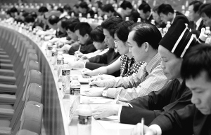 | 4月28日,省第六次党代会在省人大会堂胜利闭幕。图为代表认真填写选票。