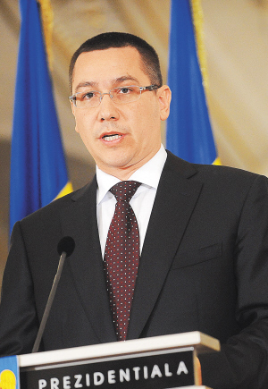 4月27日,在罗马尼亚布加勒斯特,社会民主党主席维克多·蓬塔在总统伯塞斯库宣布其为新总理后发表讲话。 罗马尼亚总统伯塞斯库27日晚在总统府宣布,社会民主党主席维克多·蓬塔为新总理,并授命其尽快完成组阁。 新华社/法新