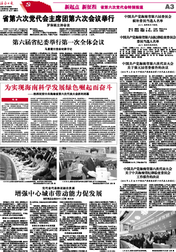 海南日报 新起点 新征程 省第六次党代会特别报道 003 2012-04-291 2012年04月29日 星期日
