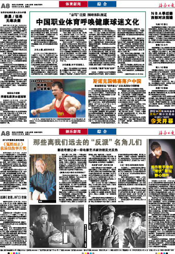 海南日报 体育新闻 综 合 008 2012-04-291 2012年04月29日 星期日
