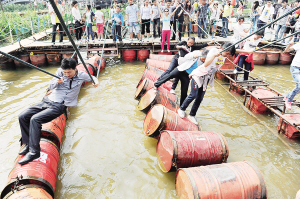 | 游客在重庆洋人街景区体验水上游乐。 |