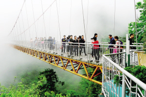 | 庐山石门涧景区出现云雾景观,崇山峻岭间时而云雾缭绕,时而云收雾敛,游客如置身仙境一般。 |