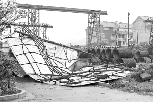 5月1日在吉水县文峰镇朱山村拍摄的一块被大风吹倒的宣传牌。 受强对流天气影响,4月30日凌晨2时左右,江西省吉水县乌江镇、金滩镇等8个乡镇遭受暴雨冰雹和短时12级强风袭击。 新华社发