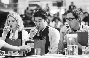 随着咖啡消费市场的高速发展,咖啡师这一职业应运而生。意大利咖啡师的月收入在1000-3000欧元之间,相当于意大利银行里的中层管理人员的水平。图为在哥伦比亚波哥大举行的世界咖啡师锦标赛上,评审正在品尝韩国咖啡师制作的咖啡。
