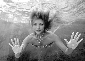 汉娜·弗雷泽是澳大利亚悉尼水族馆里的职业“美人鱼”。她能穿着美人鱼服饰在水下屏气畅游两分钟,优美的水中身姿让观众如痴如醉。图为汉娜在水下进行表演。