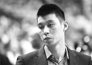 | 4月30日,因伤缺阵的尼克斯队球员林书豪在热火和尼克斯队之战中当看客。