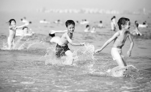 五月一日,在海口假日海滩上,大量市民游客尽情嬉戏,在追波逐浪中享受假日的畅快心情。 本报记者 张杰 摄