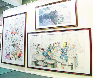 | ←在2012艺术北京现场,一家画廊代理的朝鲜美术作品让观众感到新奇。