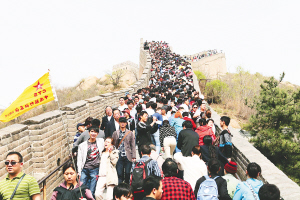 北京八达岭长城挤满了观光的游客。 新华社发