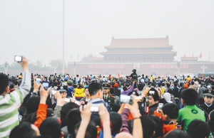天安门挤看升旗