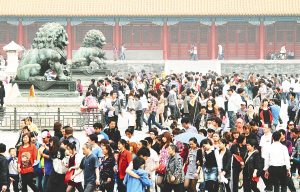 四月三十日,众多游客在北京故宫游览。 新华社发