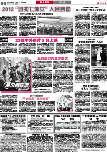 海南日报 娱乐新闻综合 014 2012-05-031 2012年05月03日 星期四