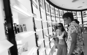 | 境外游客在三亚免税店挑选商品。 本报记者 苏建强 摄 |