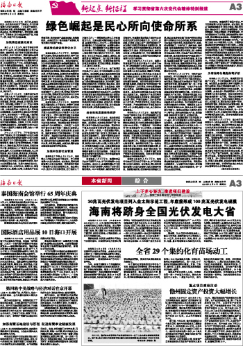 海南日报 学习贯彻省第六次党代会精神特别报道/本省新闻综合 003 2012-05-041 2012年05月04日 星期五