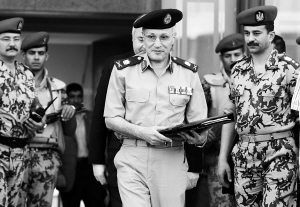 5月3日,埃及武装部队最高委员会成员穆罕默德·阿萨尔少将(中)表示,军方将按照原定的过渡路线图,如期举行总统选举,并保证选举的完全透明。军方将坚持在6月30日前移交国家权力的承诺,不会支持某一个总统候选人竞选。 新华社/美联
