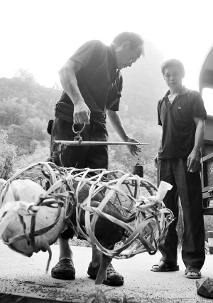 | 5月3日,在广西马山县白山镇新民村,农民在购买猪仔。新华社发 |