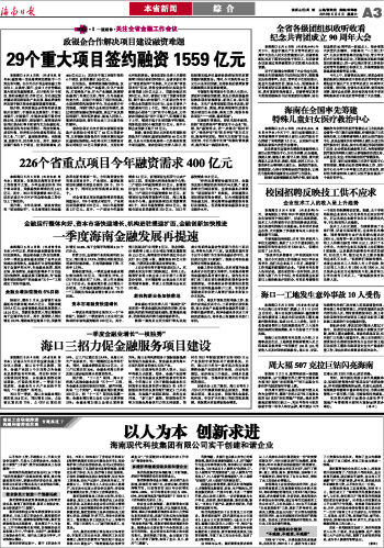 海南日报 本省新闻 综 合 003 2012-05-051 2012年05月05日 星期六