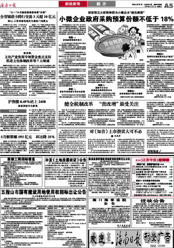 海南日报 财经新闻 综 合 005 2012-05-051 2012年05月05日 星期六