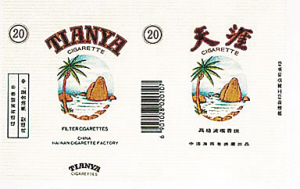 海南生产卷烟的历史不长,1983年,琼山卷烟厂才创建,1988年海南建省后,琼山卷烟厂改名海南卷烟厂。该厂初期生产的“天涯”烟标版本较多,有“宝岛”、“五指山”、“毛公山”、“海口”、“海峡”、“椰风”、“琼花”等,还出品过“宝岛”成套直卡烟标,一套5枚,分别是东郊椰林、南山、亚龙湾、鹿回头、天涯海角。在中国的烟标史和烟标家族中,海南烟标留下了引人注目的一席。