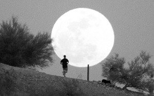 5月5日,在美国菲尼克斯,一名男子在升起的圆月下慢跑。这一天是月亮最大最圆的圆满时刻。 新华社/路透